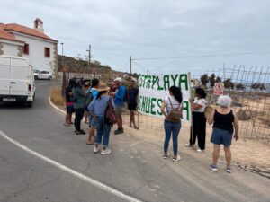 Los activistas se habían acercado a los alrededores de donde se están realizando las obras, un espacio público, para comprobar in situ si van a colocar cemento en una zona de servidumbre, para lo que no cuentan ni con permiso de Costas ni consecuentemente con licencia municipal. A pesar de la presión y el hostigamiento que afirman, reciben no solo por parte de la seguridad privada de la obra, sino de la policía local y guardiacivil, los activistas declaran que seguirán denunciando por todas las vías estas irregularidades hasta que se paralicen las obras de Cuna del Alma.