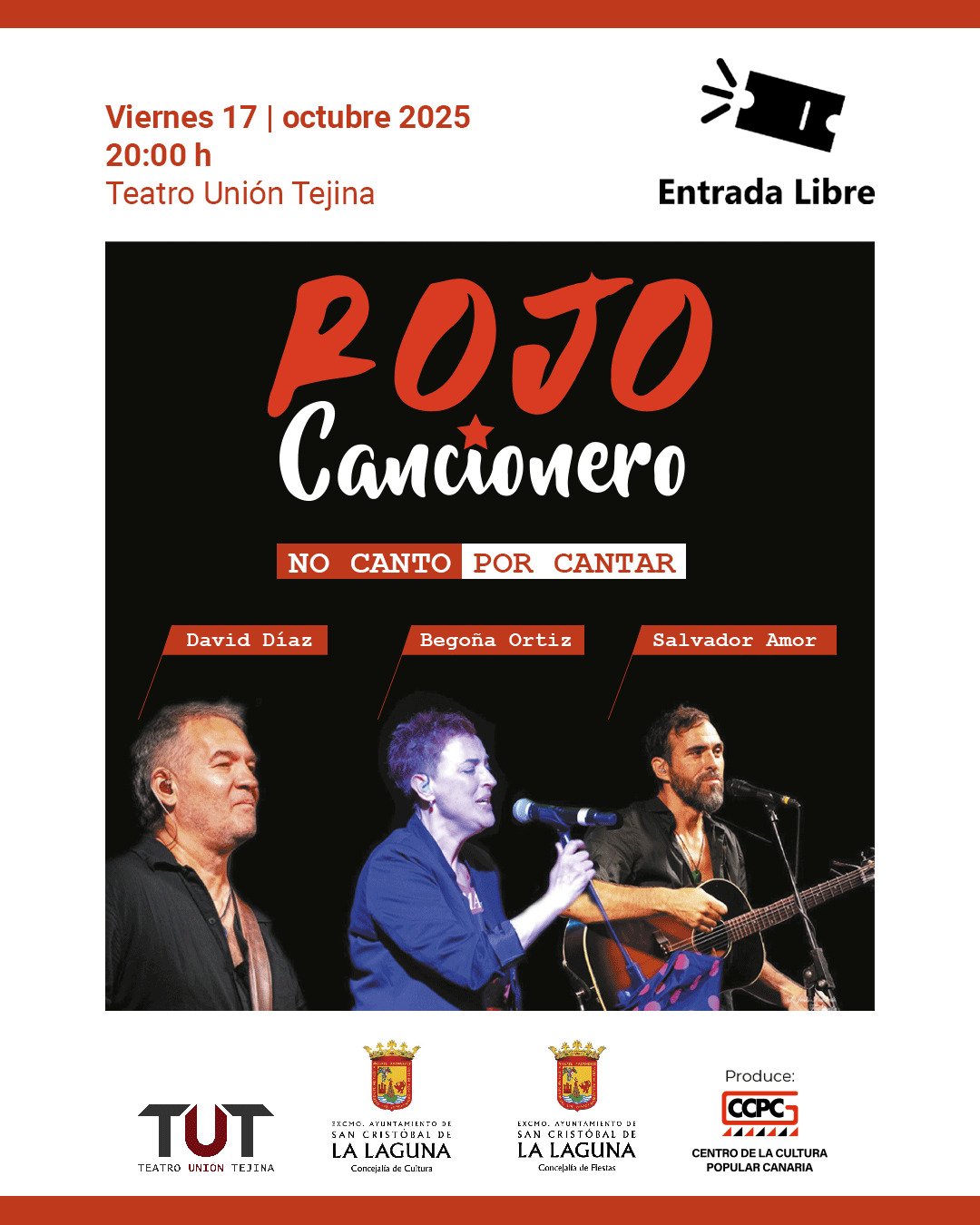 #RojoCancionero #NoCantoPorCantar #EntradaGratis #CanciónPopular #MúsicaConCompromiso #TenerifeViveLaMúsica #CulturaEnTejina #SanCristóbalDeLaLaguna #MúsicaQueResiste